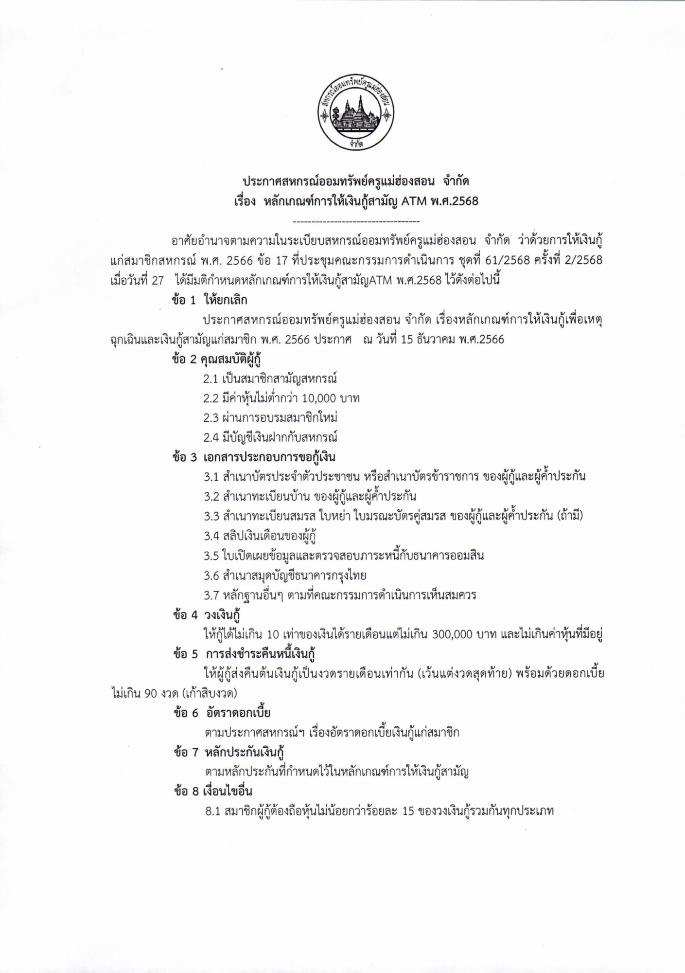 คำขอกู้เงินสามัญ-ATM (สอ) จำนวนผู้เข้าชม : 607 FacebookFacebookXXLINELine You Might Also Like หลักเกณฑ์การให้เงินกู้โครงการช่วยเหลือสมาชิกผู้ค้ำประกัน พ.ศ.2565 15 กุมภาพันธ์ 2023 หลักเกณฑ์การให้เงินกู้สามัญโครงการเพื่อการอุปโภคบริโภค พ.ศ.2568 19 กุมภาพันธ์ 2025 หลักเกณฑ์การให้เงินกู้พิเศษโครงการเพื่อพัฒนาคุณภาพชีวิต ระยะที่สอง พ.ศ.2569 13 กุมภาพันธ์ 2026