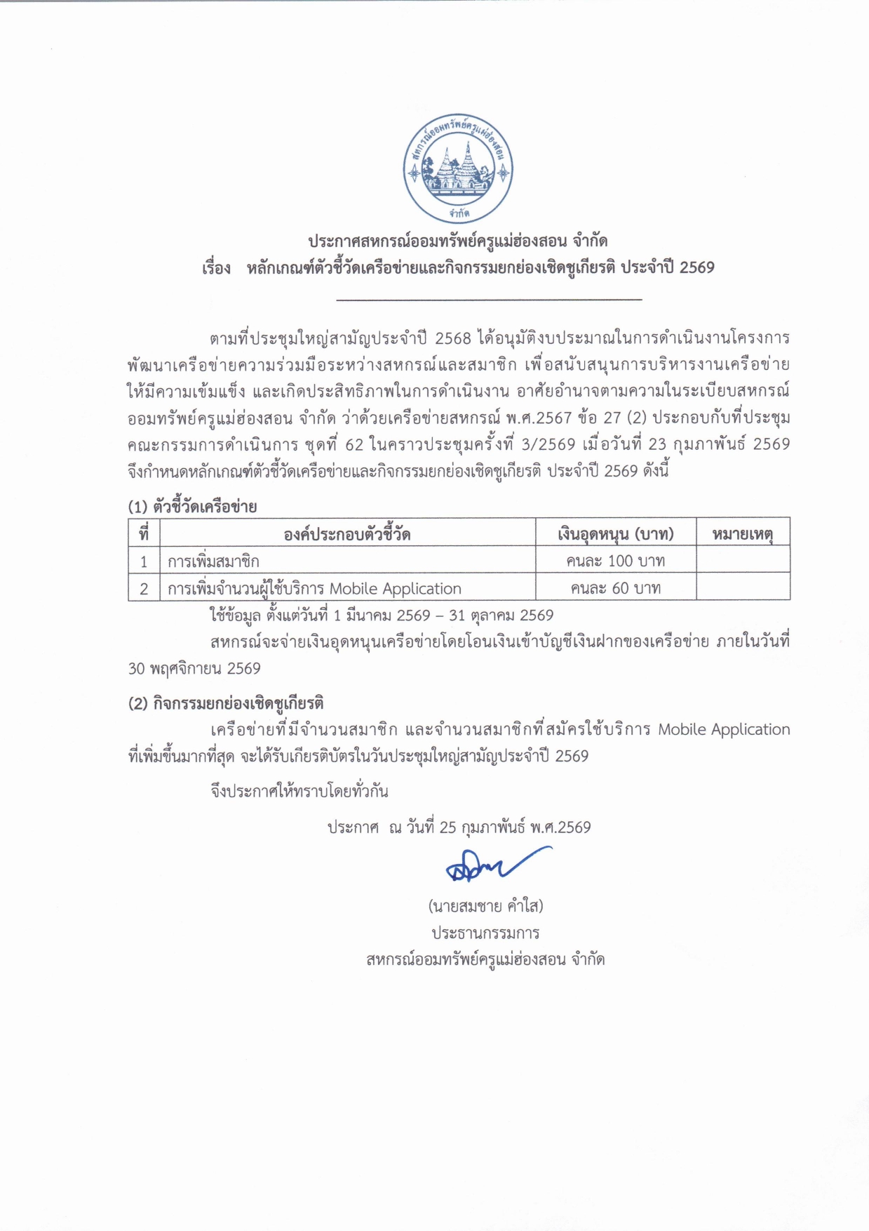 ประกาศหลักเกณฑ์การให้เงินกู้สามัญโครงการปลดเปลื้องความเดือดร้อนเป็นการชั่วคราว พ.ศ.2569 4 มีนาคม 2026